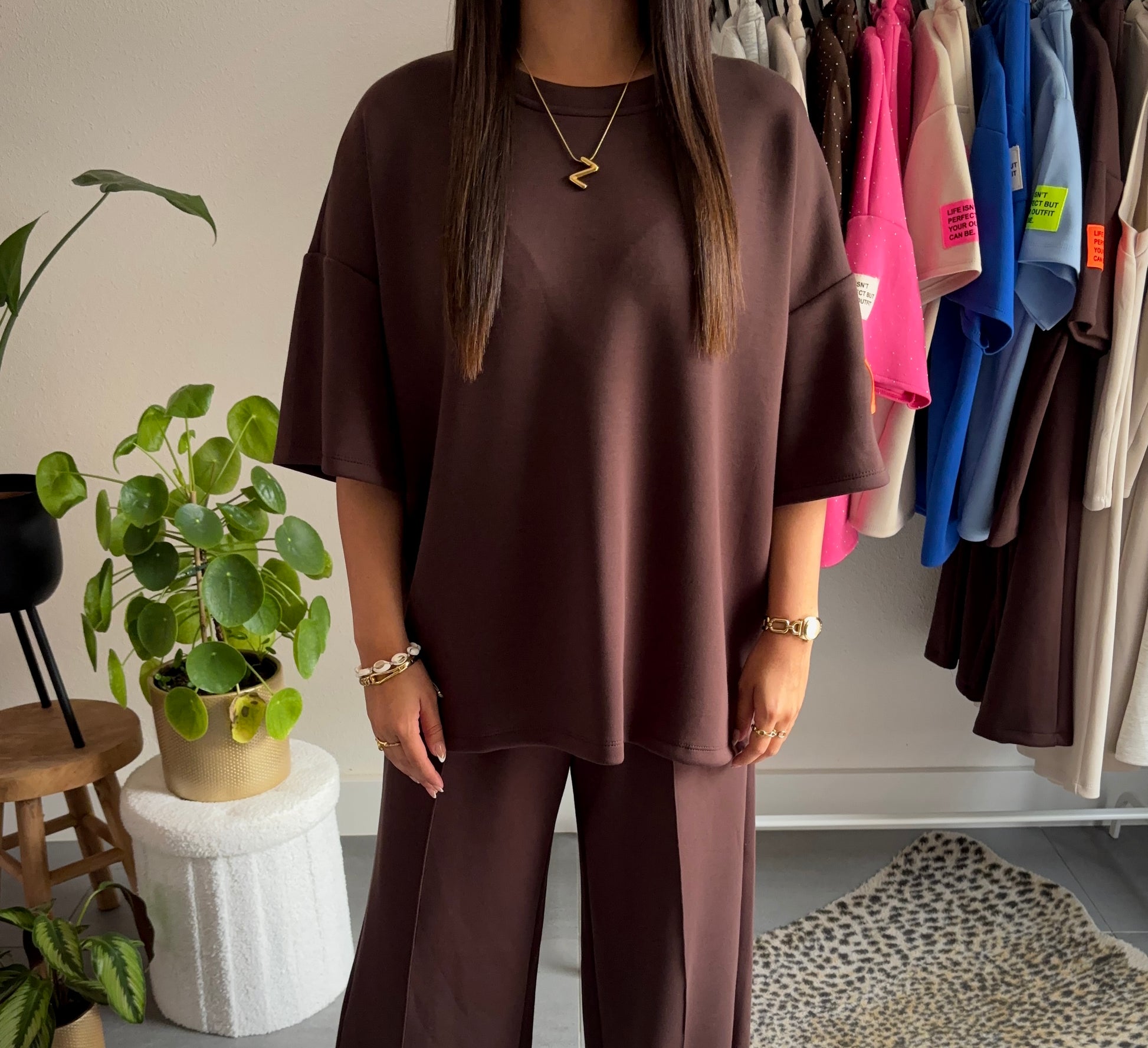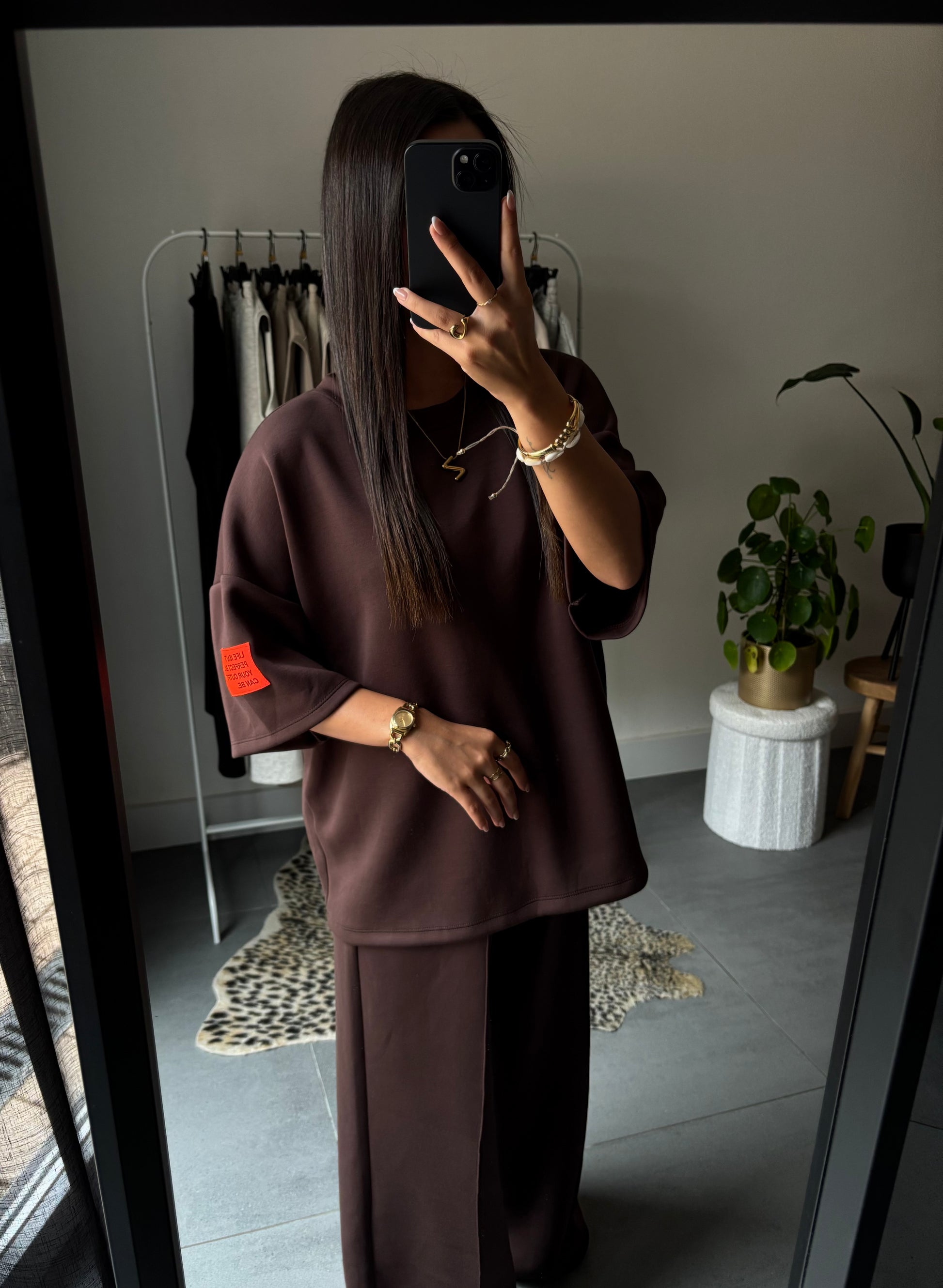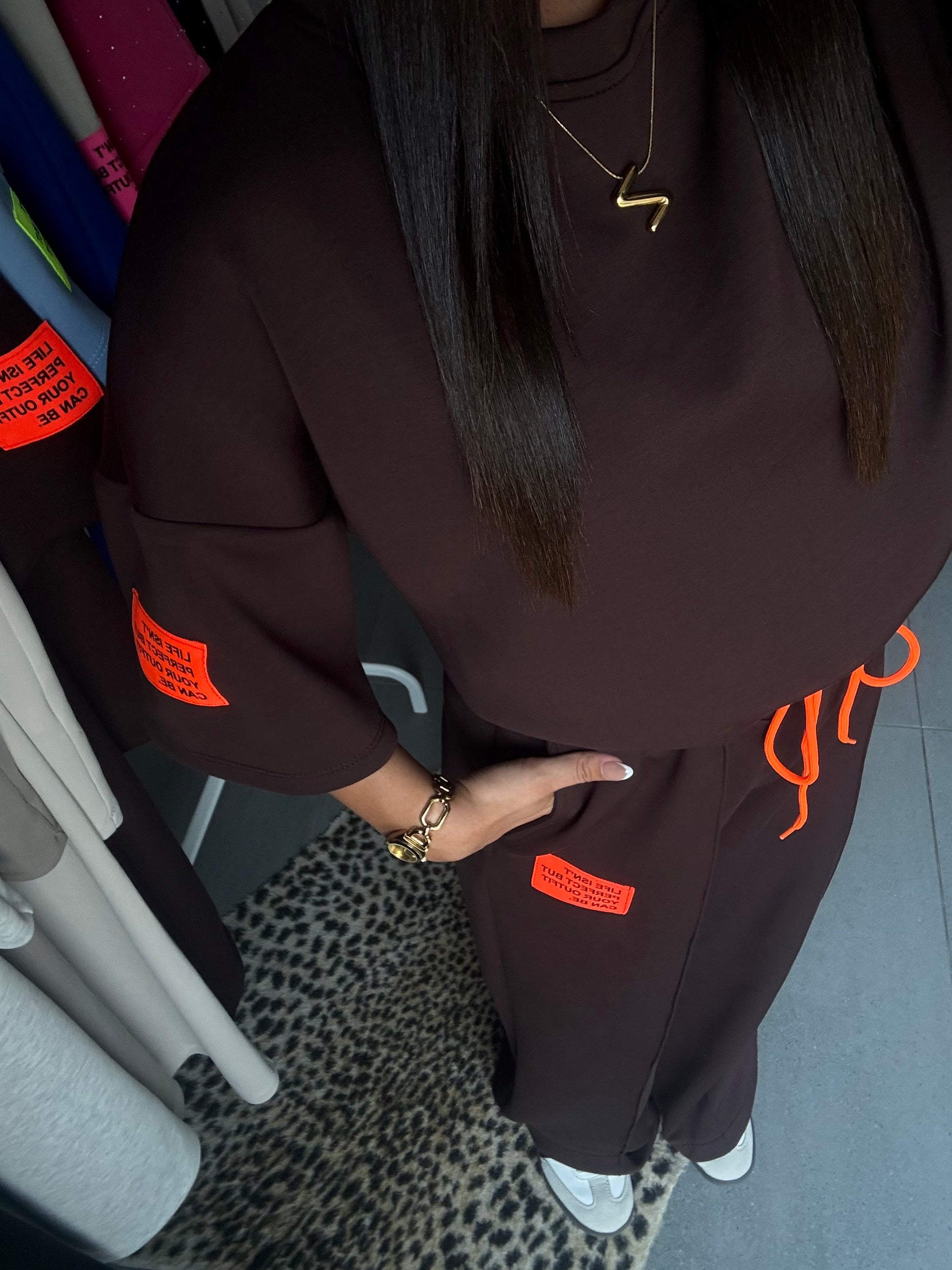 Onze "Bold contrast set"! Deze stoere, tweedelige set bestaat uit een oversized T-shirt en bijpassende broek met een elastische tailleband. Wat deze set écht uniek maakt? Het opvallende neonoranje detail: een felgekleurde drawstring en patch die een sporty vibe geven en jouw look direct naar een hoger level tillen.