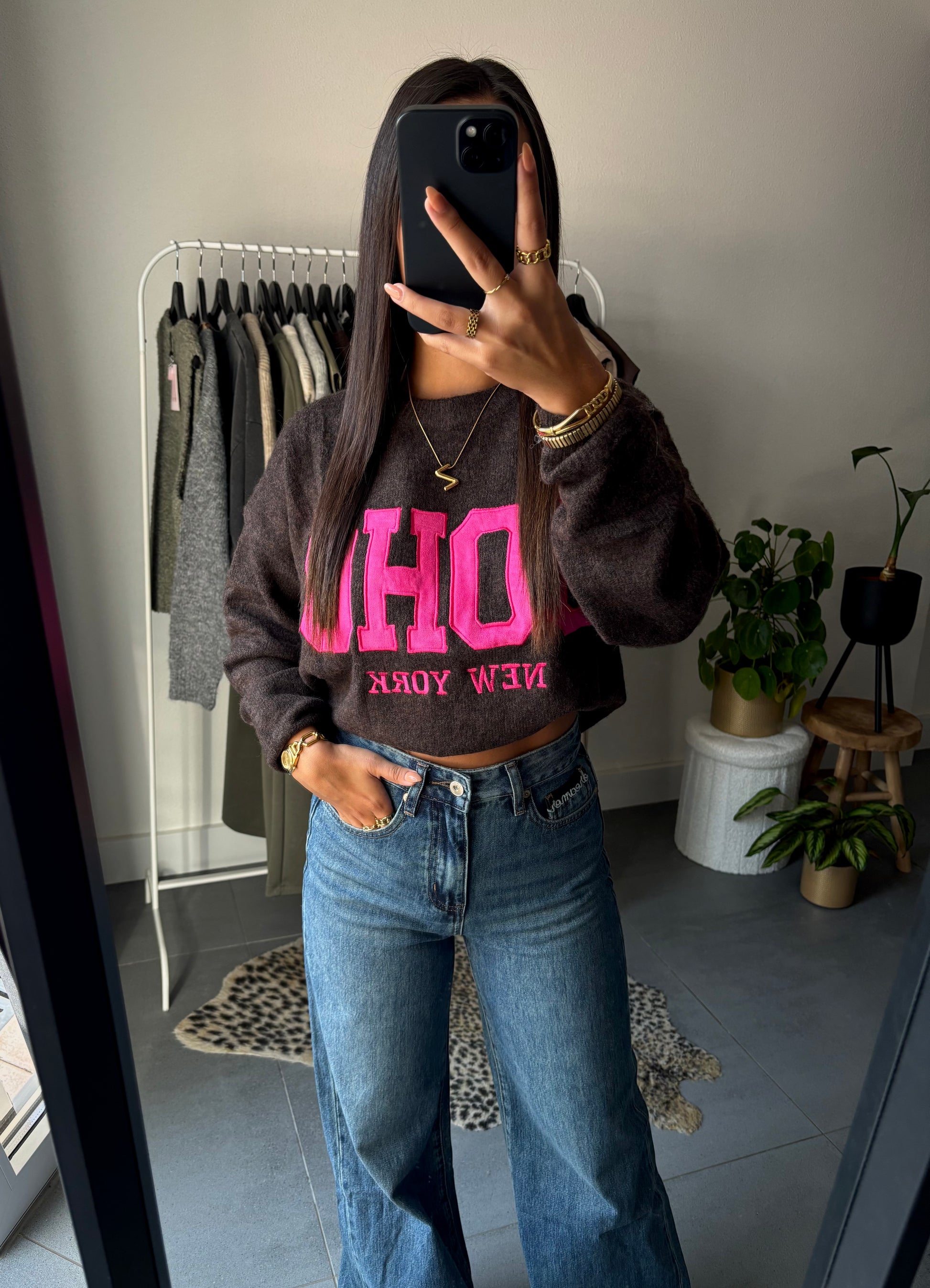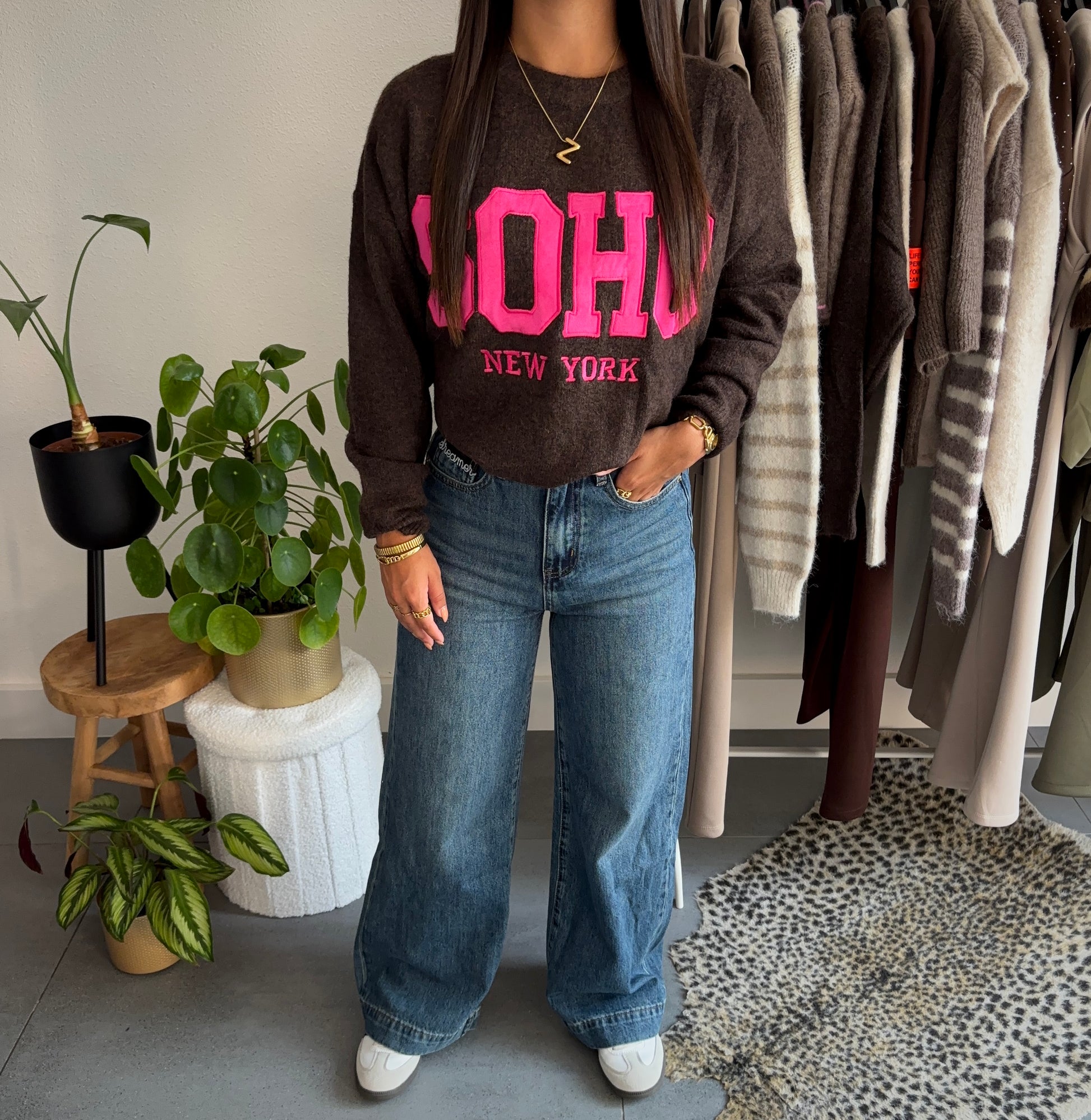 De “Soho cozy college trui” is jouw perfecte mix van comfort en stijl. Gemaakt van een superzachte wolmix, omhult deze trui je in warmte terwijl de opvallende ‘SOHO New York’-print een stoere, urban touch geeft. Verkrijgbaar in twee stijlvolle varianten, beige met chocoladebruine letters voor een klassieke look en diepbruin met felroze letters voor wie durft op te vallen.