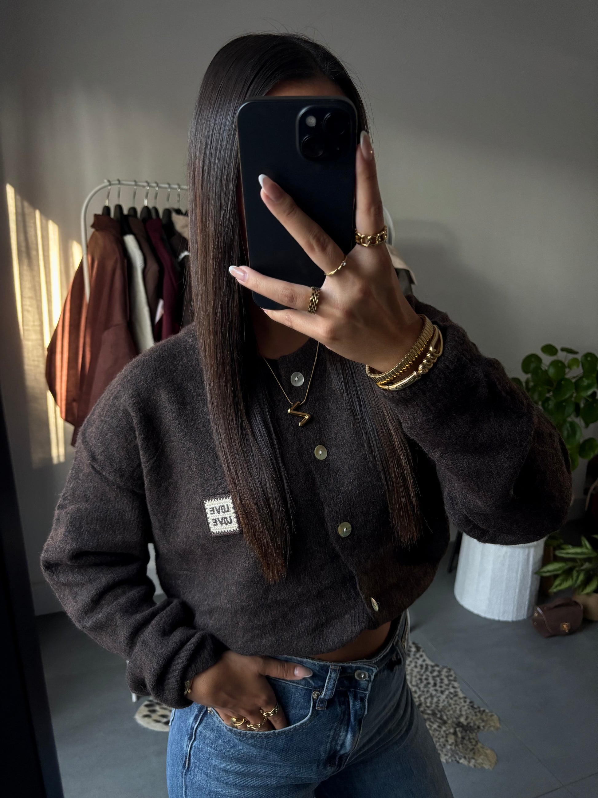 Het “Love love knit vest” is een subtiel maar stijlvol item dat warmte en charme samenbrengt. Dit vest is zacht van structuur en heeft een relaxte pasvorm, waardoor het ideaal is om te dragen in laagjes. Op de linkerborst prijkt een klein, verfijnd embleem met de tekst Love Love , een speels detail dat dit vest net dat beetje extra geeft. Perfect om nonchalant open te dragen of dichtgeknoopt voor een cozy look. Combineer met jeans of een rok voor een effortless, everyday outfit.