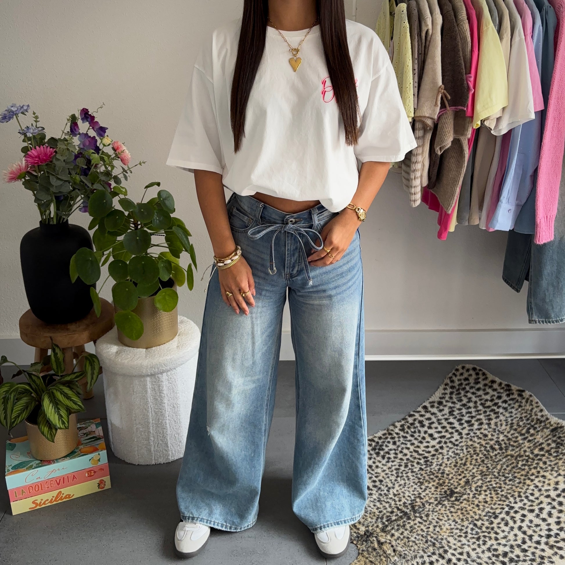 Zet je status op vakantiemodus met ons "Out of office T-shirt"! Dit oversized shirt is een echte eyecatcher dankzij de opvallende roze print op de rug, geïnspireerd op beach vibes en sea dreams.