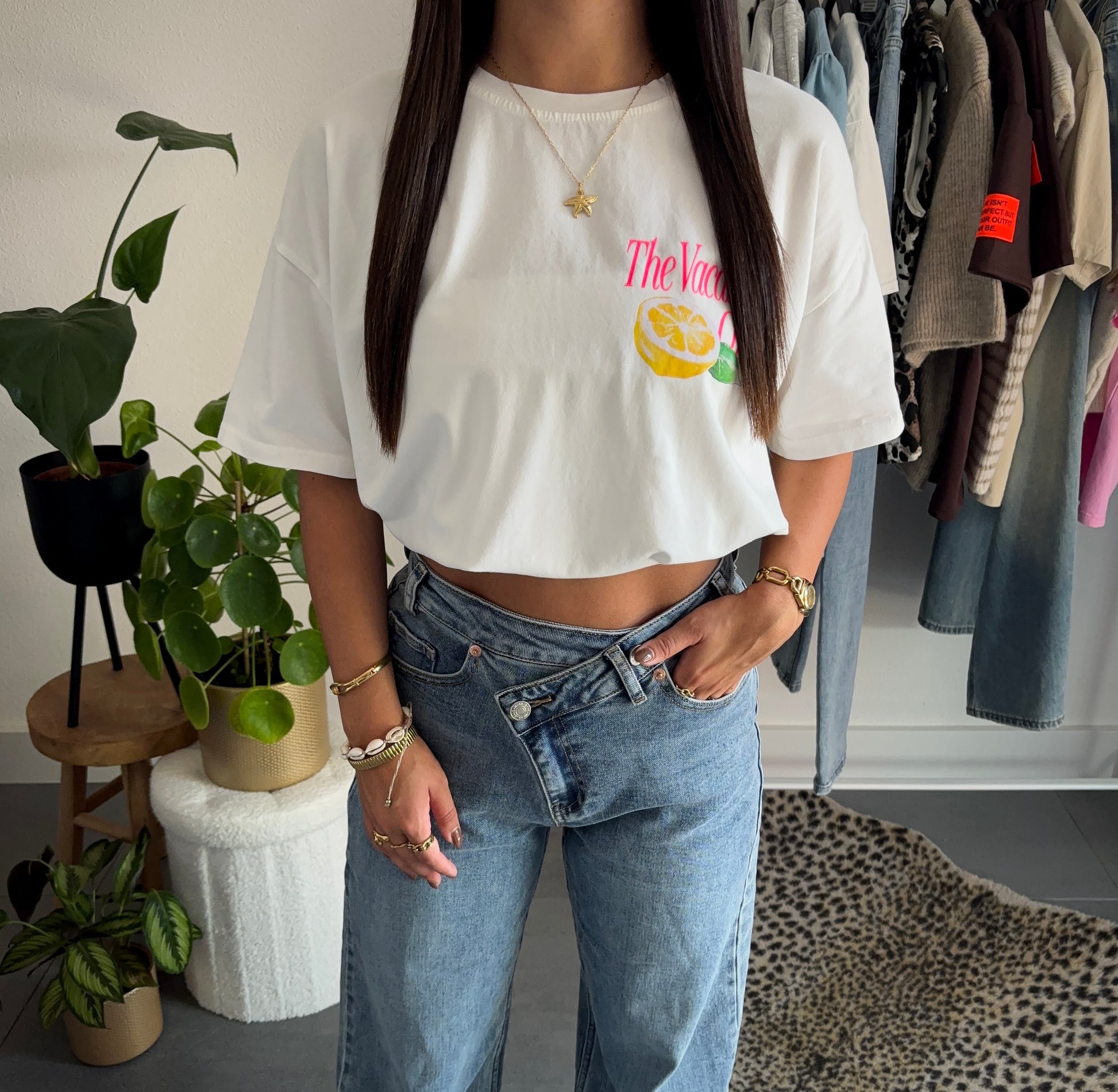 Zet je status op vakantiemodus met ons "Vacation club t-shirt"! Dit oversized shirt is een absolute musthave voor deze zomer. Dit shirt is perfect voor een zomerse dag, chill weekend of strandwandeling. Combineer ‘m met je favoriete jeans of shorts en you’re ready to go, no replies, just vibes.