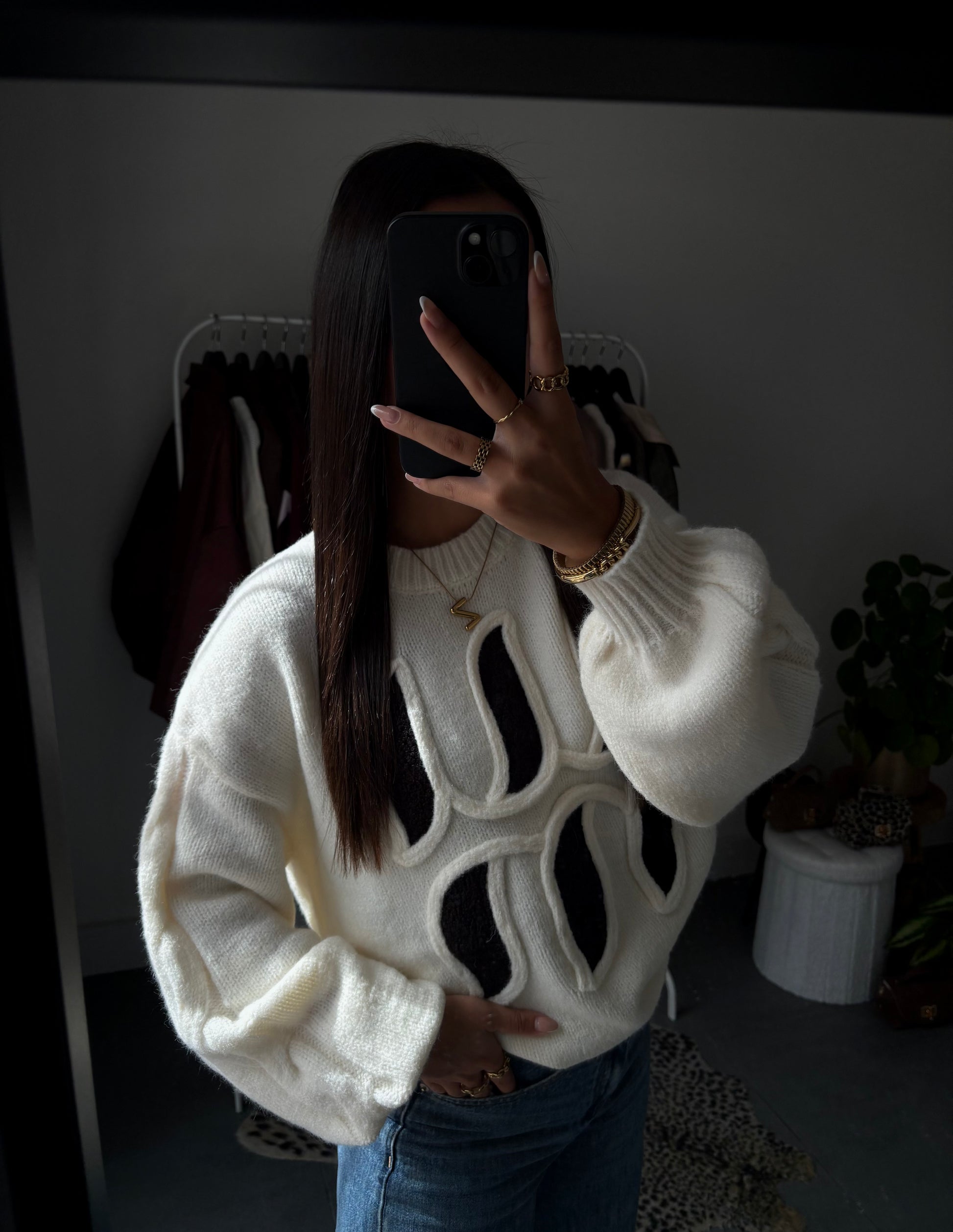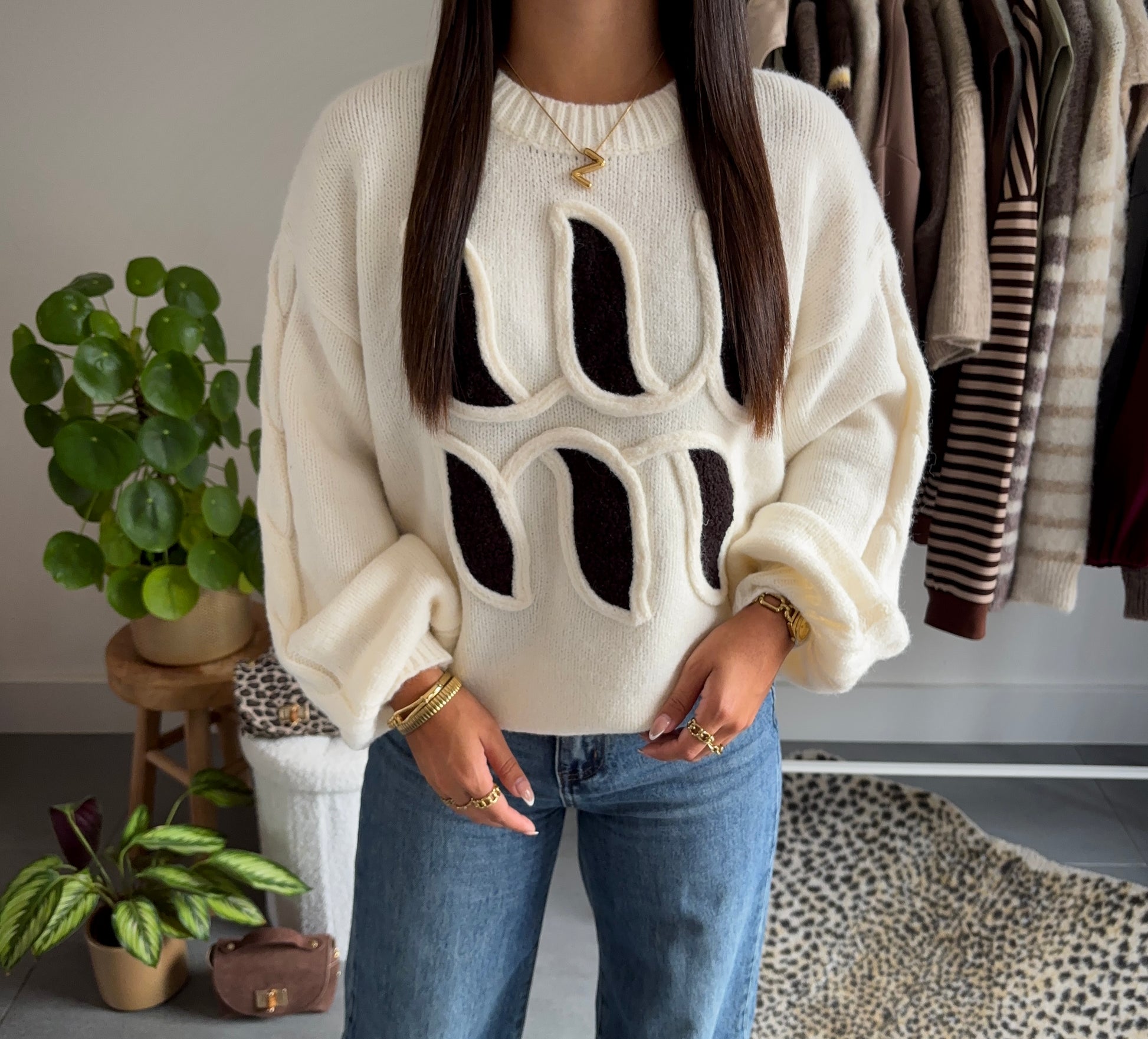 De “Wave cable trui” is een eyecatcher die luxe en comfort samenbrengt. Gemaakt van een zachte wolmix, voelt deze oversized trui heerlijk warm en knus aan. Het opvallende 3D-golvenpatroon in contrasterend zwart op crème geeft een moderne, grafische uitstraling.