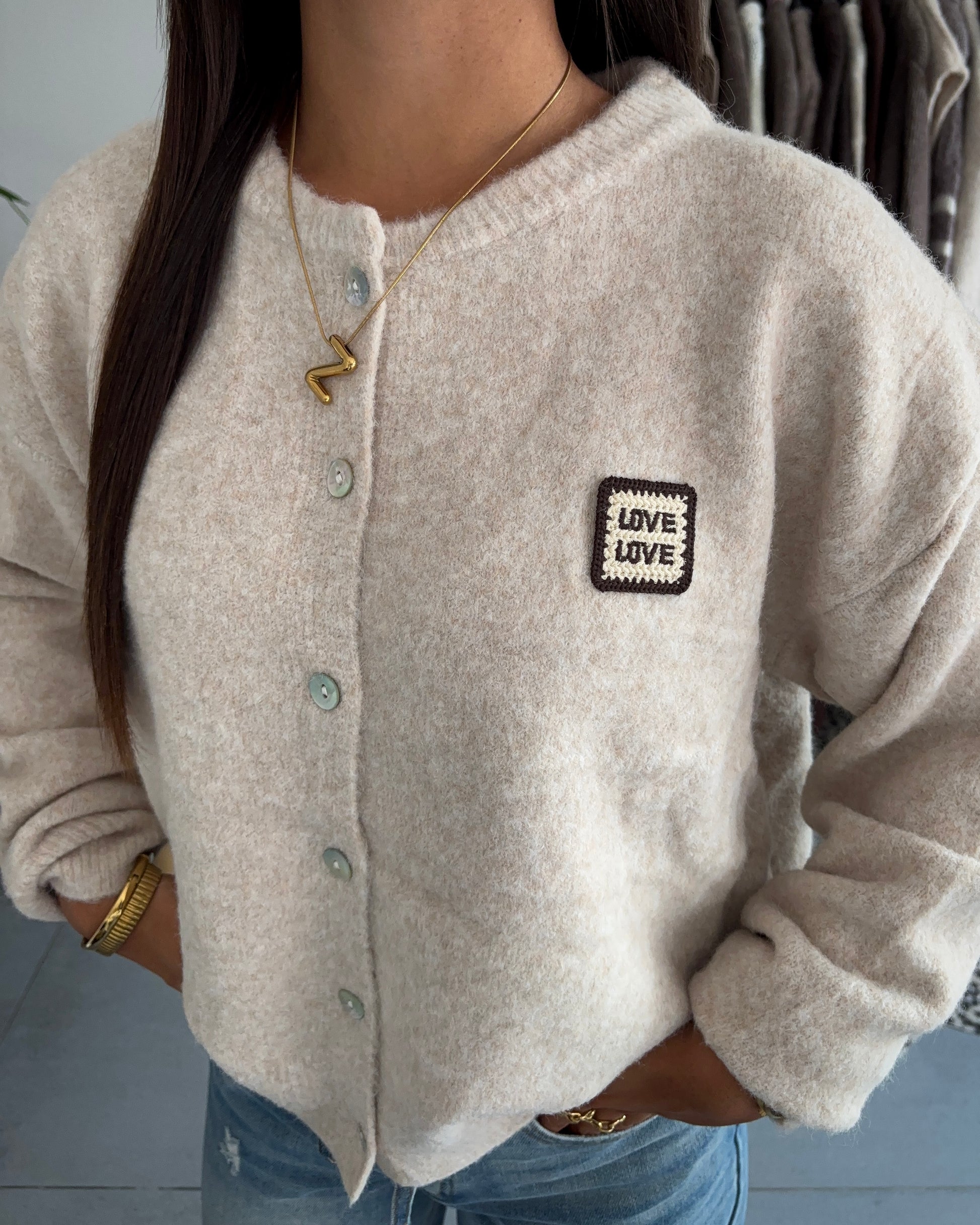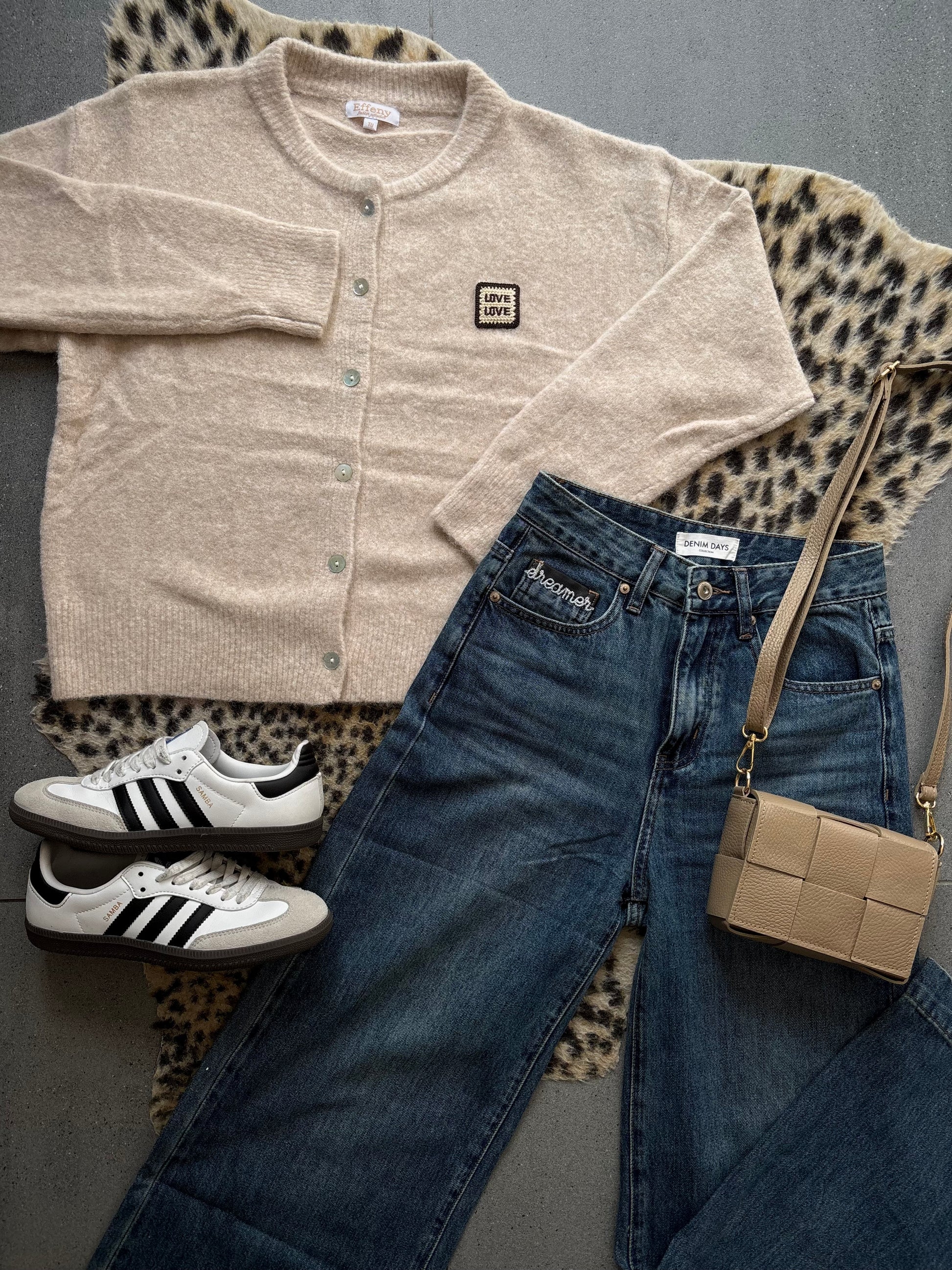 Het “Love love knit vest” is een subtiel maar stijlvol item dat warmte en charme samenbrengt. Dit vest is zacht van structuur en heeft een relaxte pasvorm, waardoor het ideaal is om te dragen in laagjes. Op de linkerborst prijkt een klein, verfijnd embleem met de tekst Love Love , een speels detail dat dit vest net dat beetje extra geeft. Perfect om nonchalant open te dragen of dichtgeknoopt voor een cozy look. Combineer met jeans of een rok voor een effortless, everyday outfit.